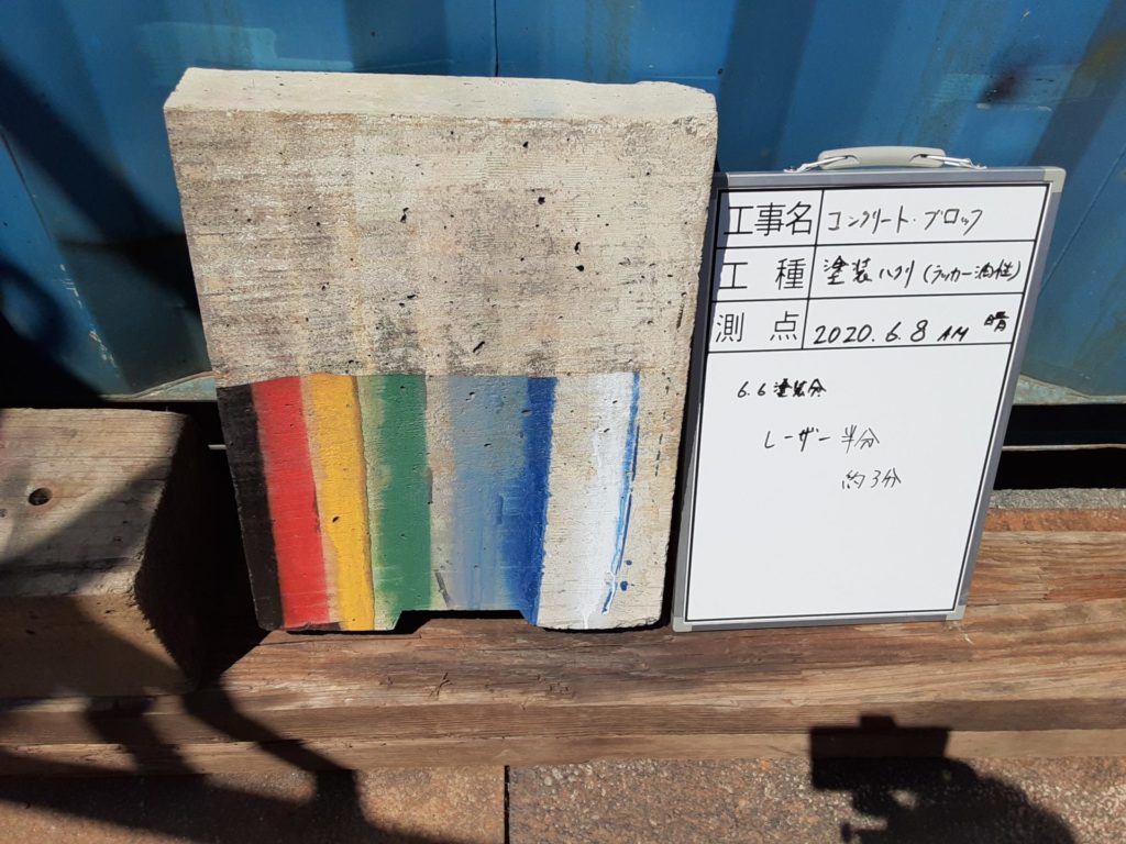 レーザ完了後の、ブロックとコンクリートの下地は、少しガラス化していようでした。