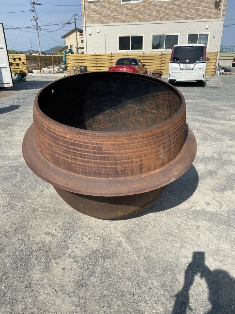 中も外もサビ一色で、直系1m以上もあるこんな大きな釜のサビが落ちるのでしょうか?