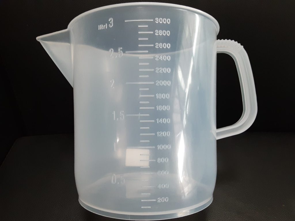 3L入れるとして、銀イオン水は20倍に薄めるので、計量カップの目盛りの一番下の線と200CCの線の間が150CCということになります。